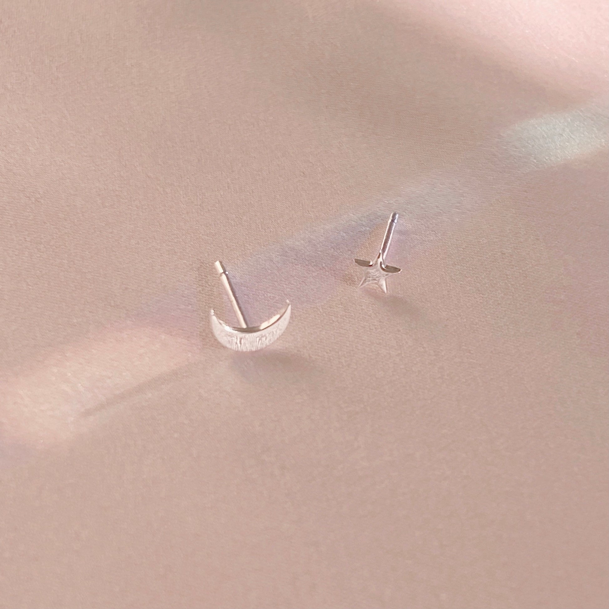 A celestial dance; a moon on an ear, a star on another. Stealing sweet glances, these bashful, cosmic lovers. Adorn your ears with our bestseller studs. Mix & match this dreamy pair.